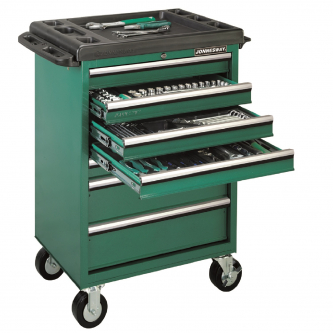 Carro profesional con 7 cajones en color verde, con 191 herramientas para mecánico.